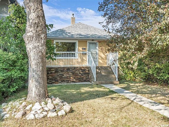 Welcome to 816 sq ft of charm and comfort in Regina's desirable Arnhem Place neighbourhood. Ideally situated just steps from Wascana Park, Candy Cane Park, elementary and high schools, and only minutes to downtown, this home offers the perfect blend of convenience and lifestyle. This bright and cheerful yellow bungalow offers fantastic curb appeal and thoughtful interior details. Inside, you're greeted by arched walkways and a spacious living room featuring large picture windows and built-in bookshelves surrounding the TV—perfect for cozy evenings or entertaining guests. The eat-in kitchen has been tastefully updated with striking forest green cabinetry and gold hardware creating a warm and stylish hub for the home. The original hardwood flooring runs throughout the living room and continues into two comfortable bedrooms and a renovated 4-piece bathroom nestled between them. The fully developed basement includes a third bedroom, a 3-piece bathroom, and a large rec room, offering excellent space for guests, hobbies, or family time. Step outside to enjoy the beautiful backyard, ideal for summer relaxation and gatherings. A single detached garage, accessible via the back alley, offers convenient parking along with additional parking space beside it. Don’t miss your opportunity to own this well-maintained, character-filled home in one of Regina’s most sought-after neighbourhoods!
