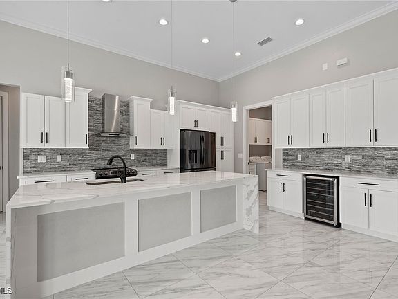 Direct Gulf access Pool Home in SW Cape Coral! No bridges to open water. Built in 2022. This modern, move-in ready, waterfront beauty sits on a wide canal with a Seawall and Dock. Step through elegant wrought-iron double doors into an open, living space with custom stone fireplace, zero-corner sliders and seamless indoor/outdoor flow. Impact resistant glass throughout. The chef’s kitchen is a showstopper with Quartz counters, waterfall island, stainless appliances, beverage fridge and a stylish coffee bar. Featuring 3 spacious bedrooms plus a den/office/flex space and 3 full bathrooms, including a guest en-suite with pool access. The owner’s suite boasts a sitting area, walk-in closets, dual vanities and a spa-inspired walk-through shower. Your private outdoor Paradise includes a negative-edge pool, spa and fully equipped outdoor kitchen, all set against Western exposure sunsets. Expansive, screened Lanai with room to lounge and dine. Oversized 3-car garage with epoxy floors and extra storage. Enjoy year-round waterfront living, just minutes from restaurants, shopping, farmers markets and endless boating destinations across Southwest Florida. Whether you are seeking a permanent residence, vacation retreat or investment property, this Home checks all the boxes.