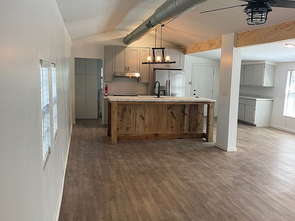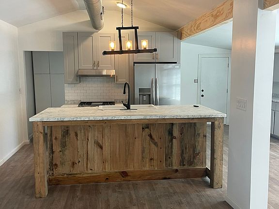 Modern upgradesGas stoveFully updated bathroomFresh interior paintBrand-new flooringCustom-built islandFarmhouse sink