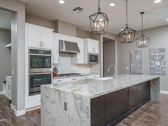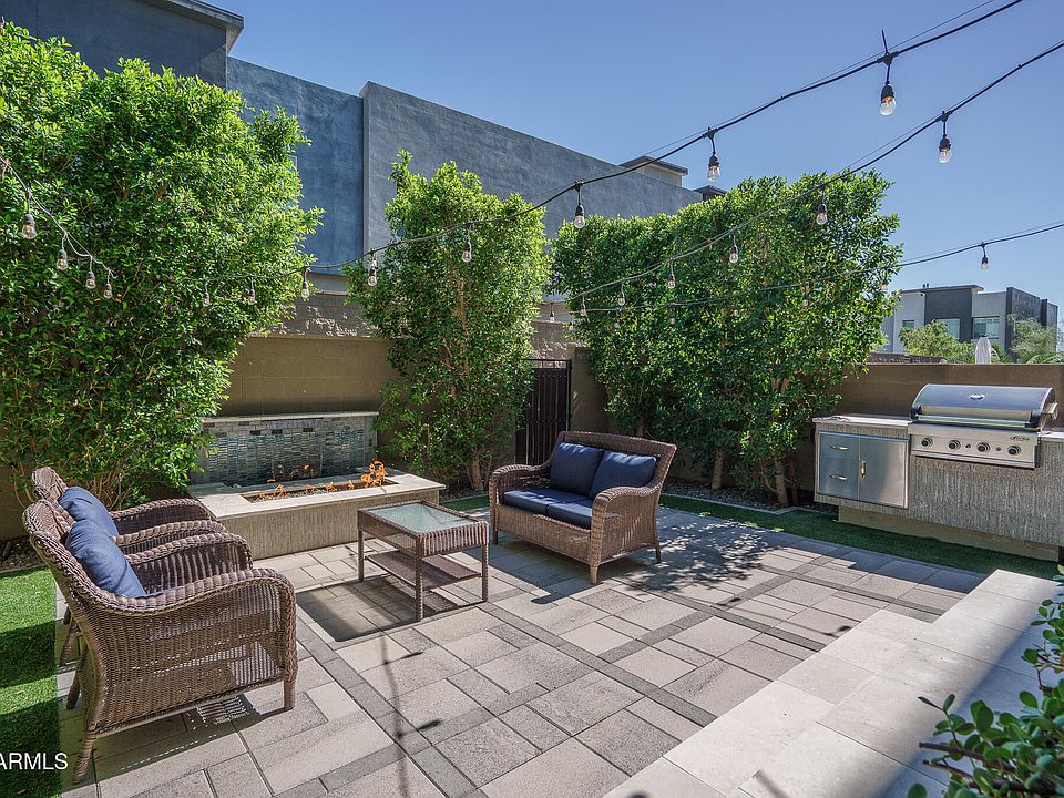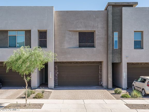 Step into luxury living with this impeccably upgraded townhome nestled in the sought-after Pinnacle at Union Park in Norterra. Boasting 3 spacious bedrooms, 2.5 pristine baths, and 2,354 square feet of thoughtfully designed space, this original-owner residence offers an open great room layout, an airy upstairs loft, and a stunning rooftop deck perfect for entertaining or relaxing under the stars. The chef's kitchen is a true showstopper, featuring elegant white shaker soft-close cabinetry with crown molding and under-cabinet lighting, gleaming granite countertops, a stylish herringbone tile backsplash, premium stainless steel appliances—including a gas cooktop and dual wall ovens—and an oversized island with a dramatic waterfall edge, breakfast bar seating, and chic pendant lighting. Step through sliding glass doors to a private outdoor retreat complete with a custom firepit, tranquil water feature, built-in BBQ, and lush privacy landscaping. Upstairs, the luxurious primary suite offers a spa-inspired bath with a dual-sink vanity, a beautifully tiled shower with multiple showerheads, a separate soaking tub, and a generous walk-in closet. Two additional bedrooms share a well-appointed full bath, and one includes its own walk-in closet. The conveniently located upstairs laundry room is outfitted with upper and lower cabinetry for added storage. Additional highlights include rich luxury vinyl plank flooring, plush upgraded carpet, solar screens, designer lighting, and an insulated 2-car garage. Enjoy resort-style community amenities such as a sparkling pool, splash pad, playgrounds, pickleball and basketball courts, and so much morethis is the lifestyle you've been waiting for!