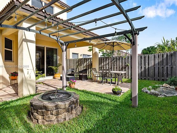 Safety, Serenity, and Seclusion are yours at Hemingway Point. Enter through the Mediterranean facade and drive down the long main street lined with stunning Royal Palms. Drive past the clubhouse, which boasts a large pool, playground, BBQ, and covered areas. As you relive your childhood, watching neighborhood kids play outside, you pull into your corner lot at the end of a secluded dead-end street. As your garage closes, walk into your 4/3.5 home, built for style and comfort. Inside, enjoy high ceilings, an open kitchen, and designer touches. The fenced yard has room for recreational vehicles. The covered terrace overlooks a water feature and gazebo. Grab a drink and sit by the fire pit to set the perfect vibe. Expansive floor plan with a small-town feel—upgrade your lifestyle.