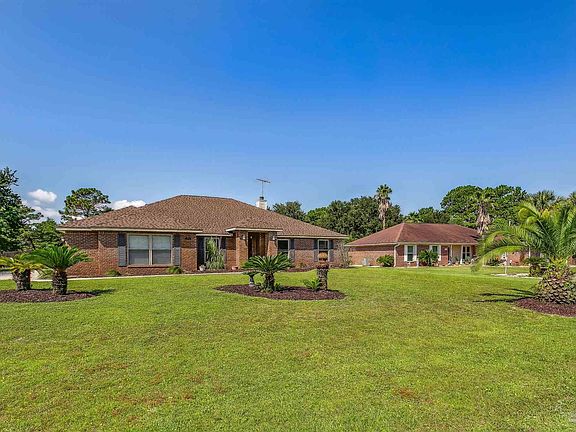 Welcome to Florida! This is a lovely, fully remodeled 4-bedroom, 3-bath home in Holly by the Sea, a well-established subdivision in the heart of Navarre. This house has had loads of updates to the interior and a renovation that opened the kitchen to the living room, upgrading the design to a beautiful and highly sought-after open floor plan. This property sits on a large corner lot and has ample driveway space for parking, 2 car garage, a large backyard with an inground pool, a yard building, plenty of additional space for gardening, a fire pit, Boat/RV parking, etc. Inside is where you will find a beautifully redone home ready for you! The main living area of the house is open, making entertaining friends and family a breeze. The newly renovated kitchen and island are beautifully done in a clean crisp style so popular with our coastal residents. When you're ready for a more intimate setting, there is a formal dining room to bring the group together for a meal or game night. The 3-way split floor plan is ideal for larger families who live with a member who would prefer their own (fully renovated) bathroom or families that have guests that visit often. The additional 2 rooms share the 3rd bathroom, also fully renovated, and their own side of the house. Separated from each of the additional bedrooms, the master suite is roomy with a lovely, renovated bathroom following suit with the clean crisp coastal theme. Walking through the sliding glass door from the living room leads you to a sunroom and out to the large backyard! Sit on the oversized, covered back porch, enjoy a day by the pool, or work on projects easily with your very own work shed! This home has it all! When you’re ready to get out, you can also enjoy swimming, tennis, or working out in the gym in their amazing rec center. With its location and being just minutes away from the Gulf of Mexico, this home is a great find and is sure to be on the top of your list!