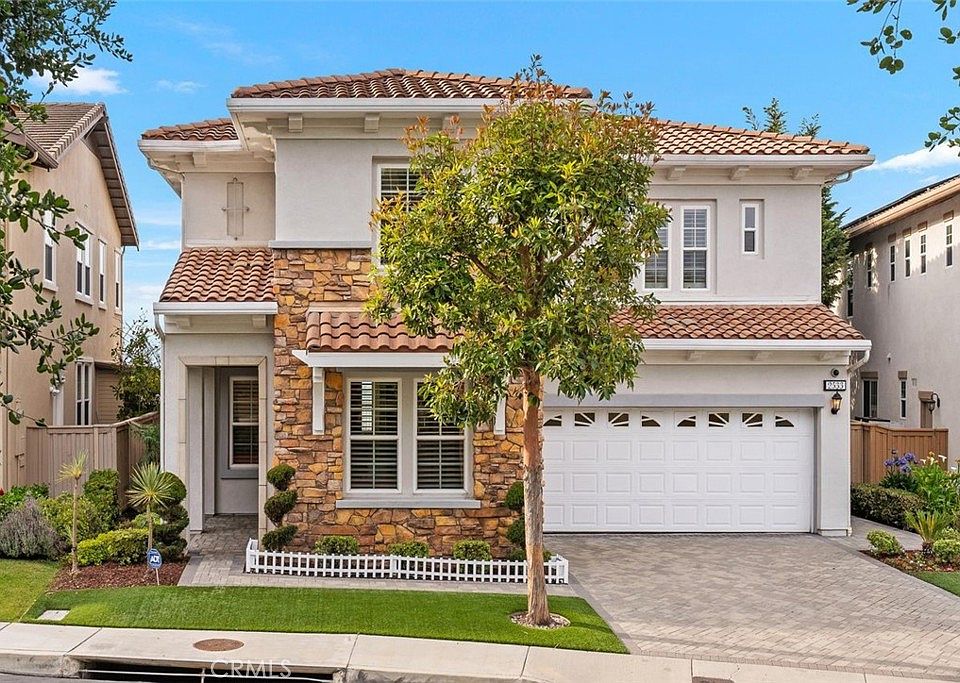 This meticulously maintained and luxuriously detailed Tuscan-style home has coffered ceilings and is adorned throughout with dentil crown moldings, plantation shutters and designer colors.