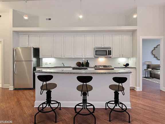 Own an architecturally interesting condo in Lincoln Park boutique elevator building with secured gated entry. Urban 2 bed 2 bath soft loft with high ceilings facing East overlooking Wrightwood Park! Sunlit home with a large island and stainless steel appliances. Unit has hardwood floors throughout, wood-burning fireplace and large balcony with room for grill and seating. 2nd bedroom is ideal for office and guest visits. Home is wired for sound with in-mount speakers, Nest thermostat and digital front door lock. Convenient in-unit washer/dryer. Large master suite with walk-in professionally organized closets and updated master bath with dual sinks. Tandem two car garage parking is included in the price. Newly painted and ready for immediate occupancy. Professionally managed building in a central location that is literally minutes away from the express way, shopping, great restaurants and all of Lincoln Park's wonderful attributes.