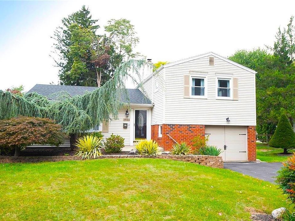 Discover your dream home in North Bethlehem! As you step into the inviting living room, you'll be greeted by soaring cathedral ceilings and beautiful hardwood floors. The kitchen is a chef's dream, showcasing golden teak flooring, stainless steel appliances, built in wine fridge, extra cabinetry, recessed lighting, and elegant granite countertops. Beyond the full dining room, a light flooded sunroom seamlessly connects your indoor and outdoor living spaces. The upper level is where you travel into the dormitory wing where you will find two full baths (one en-suite) and three generous bedrooms with plenty of closet space. The lower-level family room (or potential 4th bedroom) includes a half bath, expansive laundry room, as well as convenient access to both the backyard and garage. The beautifully landscaped, fully fenced yard perfect for entertaining family and friends boasts a large patio poured, a 28' above-ground pool, with pool shed. Additionally, the partial basement offers excellent built-in storage or the potential to expand your living space with your creative touch. Located just minutes from downtown Bethlehem, this home provides easy access to restaurants, entertainment, and major highways including Rt 22, Rt 33, and Rt 78. Don’t miss this incredible opportunity!