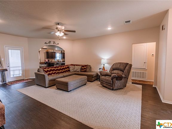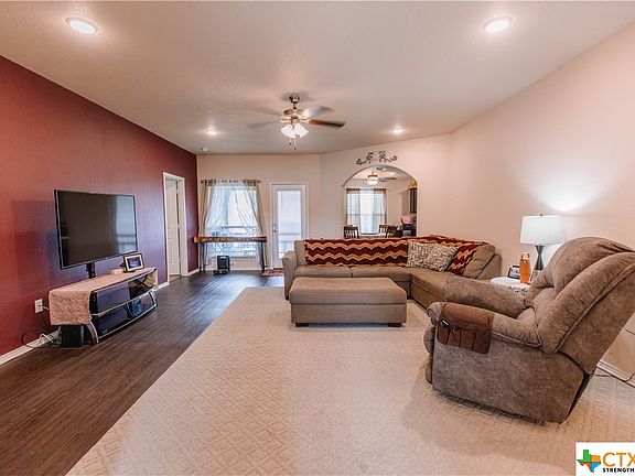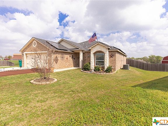 Welcome home to this spacious 4 bedroom 2 bath in Belton ISD! Located on an oversized cul-de-sac lot, this home features vinyl plank flooring and carpet throughout. Spacious kitchen with espresso stained custom cabinets, center island, and roomy breakfast nook. Large master bedroom with ensuite bathroom offering his/hers walk-in closets, dual vanities, shower/garden tub combo. Large storage shed and solar panels convey. This home is conveniently located within minutes of shopping and schools and is approximately 10 miles from Baylor Scott & White Hospital, 11 miles from the VA Hospital, 14 miles from Seaton Medical Center, 4 miles from UMHB, and only 1 mile from I-35. Don’t miss it!