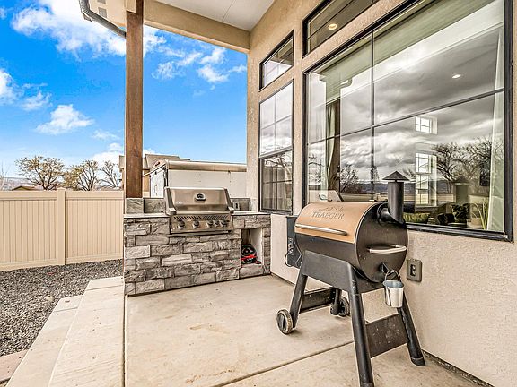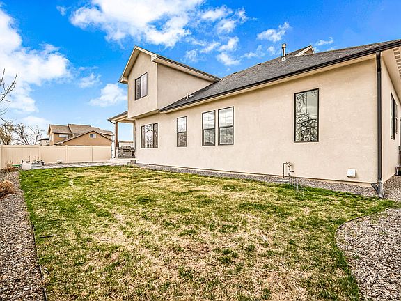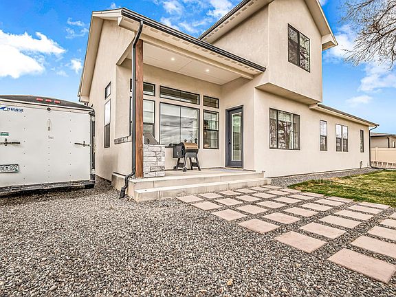 In a sought-after north location, this exceptional home, constructed in 2021, provides quick access to downtown, hospitals, and shopping hubs. It is built on a crawl space foundation and has energy-efficient 2 x 6 exterior walls with blown-in cellulose insulation. Boasting 5 bedrooms, a custom kitchen with a hidden pantry, and huge amounts of cabinet space with 8’ tall doors and 10’ to 12’ flat ceilings throughout. There is ample storage space with walk-in closets in two bedrooms and storage under the stairs. The bathrooms consist of beautiful custom tiled showers with glass doors and a large soaker tub in the five-piece master bathroom. The home has hardwood floors as well as hardwood stairs and an awesome iron railing. The living room is open concept, with large windows where you can sit and enjoy the built-in fireplace while also watching the sunset over the monument and the livestock play in the adjacent grass field. The large upstairs bedroom currently serves as the home's theatre room but is ideal for an additional family room, office, or flex room, catering to diverse lifestyles. This home has a wonderful layout and feels much larger than it is. Outside, you will find a fully landscaped and fenced backyard with a built-in, custom natural gas grill located under the covered back porch (you will never fill another propane bottle again!). Ample trailer parking exists on the side of the home that will easily fit two to three smaller trailers. The large driveway easily larks four AIC-size vehicles and the three-car garage is a mechanics or wood hobbyists dream with ample light, a large workbench, black metal cabinets, and an epoxy floor. You won’t go wrong with this great North area home!