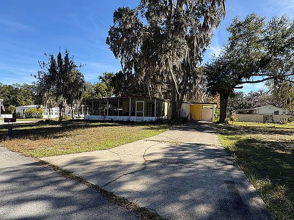 This 1968 home features 1400 sq ft of living space. The kitchen is efficient and offers plenty of storage, newer appliance and a large pantry. The living room is open to the dining room and has double doors out onto the extra-large screened in porch that wraps around the home. Also inside the home is a utility room which is big enough to hold the washer and dryer that are currently in the shed. The master bedroom has plenty of closet space and a ½ bath attached to it. The guest room is well appointed with a large closet. The main bath has been redone with a walk-in shower. You also have 2 driveways, 2 carports and a shed along with an enclosed-out door storage area. Floors are solid and a recent inspection was done on the roof and found to be in great shape. Laminate flooring throughout the home is a big plus and it has been professionally painted inside and out in the last year. This home comes fully furnished and the Golf cart is negotiable, just bring your personal items. This home could be yours with a reasonable offer as owner must sell asap. Welcome home.