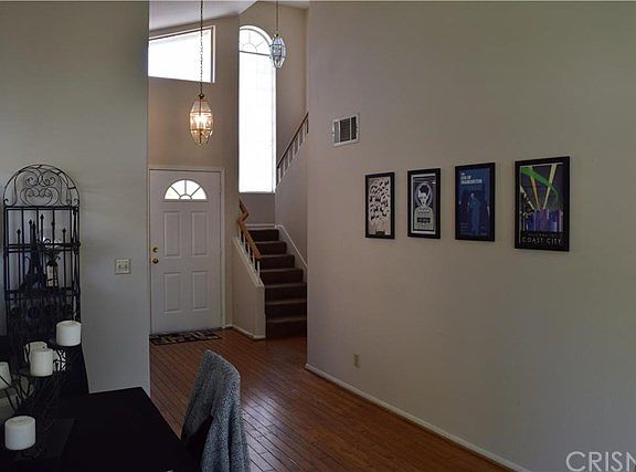 Terrific "Copperfield" offering wood floors throughout the downstairs, formal vaulted living room, family room with fireplace and sliders to the rear yard. Kitchen has a breakfast counter and oak cabinetry, stainless appliances. Downstairs den or 3rd bedroom (no closet) with full bath and newer tile flooring. Laundry closet with side by side washer/dryer. Master retreat has bath with dual sinks, separate shower, walk-in-closet with mirrored door. Newer carpet (1 yr.), fresh paint (1 yr.), smooth ceilings and blinds throughout. A must see!! No Mella Roos!!