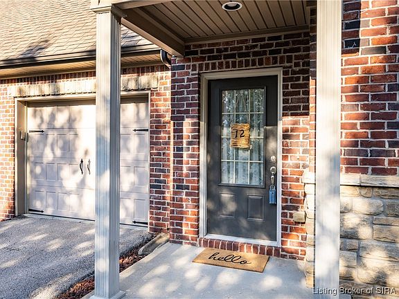 There is a HALF BATH on the main floor and 2 full bathrooms upstairs located ensuite….in each bedroom. The Bedrooms also have WALK-IN CLOSETS. The laundry is smartly located upstairs by the bedrooms! The covered front porch and back patio add to this great home. You must see this LOW MAINTENANCE condo with easy access to Louisville and all of Southern Indiana. HOA includes lawn mowing, snow removal, preventative termite treatment, roof insurance, and common area insurance. These condos rarely come up for sale and they sell fast. Call for a private showing today!
