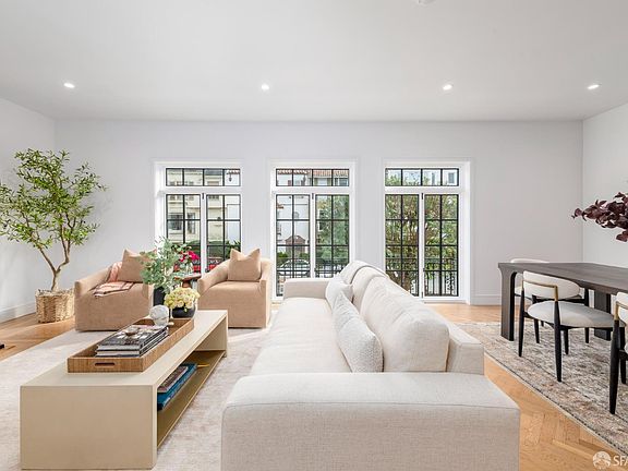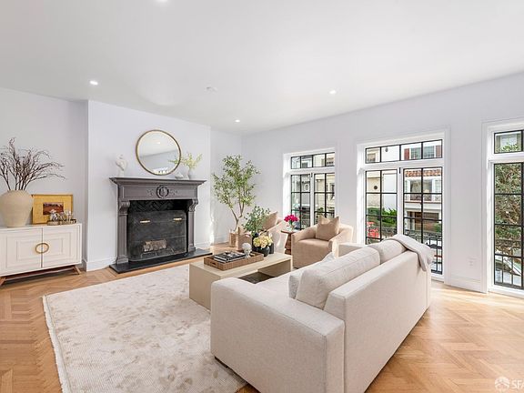 Exquisitely reimagined by Davis Rae Design and taken down to the studs, this two-level Spanish Mediterranean residence in a coveted two-unit building blends timeless character with modern luxury in the heart of the Marina District. With three bedrooms and 2.5 bathrooms, the home is thoughtfully designed for comfort and privacy. Two serene bedrooms sit quietly at the rear of the main level, while the lower level is devoted to the primary suite featuring a floating double vanity, a spacious walk-in closet, and direct access to your private deck, patio, and spacious yard. The chef's kitchen is outfitted with a full Thermador appliance suite, Neolith counters, and handcrafted cabinetry, opening seamlessly to the dining and living areas anchored by an original wood-burning fireplace. Every detail has been carefully considered, including a seismic upgrade and all-new electrical, plumbing, and air conditioning. Additional highlights include restored herringbone white oak floors, new double-paned windows, in-unit laundry, new roof, one-car garage parking, and exclusive outdoor living spaces. Just steps from the Palace of Fine Arts, Crissy Field, and the cafes, restaurants, and shops of Chestnut Street.