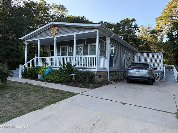Well maintained doublewide with lots of upgrades in ICW Community with community pier located less than 5 miles to Holden Beach. Owners have added a personal touch to the decor of the home which is warm and beautifully decorated. It has an open floor plan with upgraded kitchen countertops, electric tankless hot water heater on demand by RHEEM Performance, large country sink in Island, large range hood, master tub with small jets, barn door, customized blinds, and Ecobee smart thermostat. Outdoors, gutters and leafguard, privacy fenced in back yard, double cement driveway, irrigation system and two storage buildings 8x10 and 10x12. Home has a 5x18 screen porch, 6X27 covered porch with an additional side deck. and new roof five yrs old. A must see!