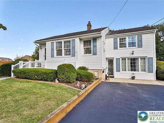 NORTH BETHLEHEM-- A RARE FIND WITHIN CITY LIMITS. This unique prop has endless possibilities since it sits on a DOUBLE LOT. Built at a time when quality construction was the standard, seller has maintained main systems & has created a comfortable living space inside & out. It features a slate roof, C/A, 3 ceiling fans, replacement windows, h/w flrs, front porch, rear deck, sunroom, & utility shed. Layout includes LR/DR combo, Kit w/ wood cabs, 2-3 BDs, 1 full bath, 1 PR, & toilet in basement. Garage was converted into a 3rd BD/powder rm. On 2nd flr is main BD w/ walk-in closet. Rear BD has access to deck & sunroom. Along w/ laundry facilities, basement is partially finished w/ 2 paneled rms . Wkp area includes a sleek new oil tank & built-in workbench. If you enjoy wide-open green space, you'll love stepping out to the backyard—a peaceful & private sanctuary w/ mature arborvitae bordering the back, fencing on sides, lush green lawn, & colorful perennial plants surrounding the house. A 10x20 shed w/ electric sits in rear of prop. The sunroom is a cheerful place to retreat to w/ lots of windows, C/A, ceiling fan, carpeting, & phone/cable jacks. A full attic is a great place for long-term storage. Prop is served by cesspool & has been inspected. It is in excellent condition. Check Seller Disclosure for reports/receipts. Property being sold in "as is" condition.
