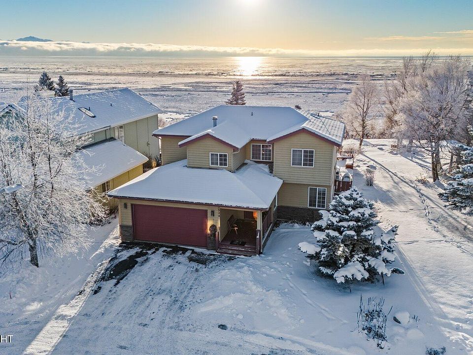 Experience breathtaking bluff views of the Turnagain Arm from this beautifully designed home, perfectly positioned to capture Alaska's natural splendor. An open-concept kitchen and living room create a bright, welcoming space ideal for entertaining or relaxing by the panoramic windows.The main floor features a spacious primary suite complete with a generous walk-in closet and a private serene atmosphere. Upstairs, you'll find two additional bedrooms and a versatile bonus flex space perfect for a home office, media room, or play area. With its thoughtfully planned layout and unrivaled views, this home offers a rare blend of comfort, style, and scenery. Don't miss the chance to make it yours.