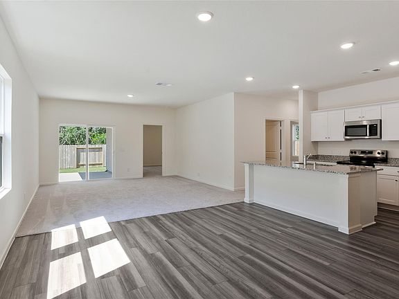 BRAND NEW HOME WITH NO NEIGHBORS IN BACK JUST BEUTIFULL WOODS! BACK YARD HAS A COVERED PATIO ALSO! HOME OFFERS FULL SS APPLIANCE PACKAGE WITH REFRIGERATOR,AND WASHER & DRYER! 3 BEDROOMS, 2 BATHROOMS OPEN CONCEPT KITCHEN,DINING,AND FAMILY ROOM.THE KITCHEN HAS A LARGE ISLAND WITH GRANITE COUNTERTOPS! NEW BLINDS ON ALL WINDOWS AND SPRINKLER SYSTEM TO KEEP YOUR GRASS NICE AND GREEN! PUBLIC POOL WITH PICKLEBALL COURT AND PLAYGROUND. RURAL LIVING WITH EXPRESSWAYS 99,290,249 WITHIN A FEW MILES AND THE OUTLET MALL ON 290 CLOSE BY!