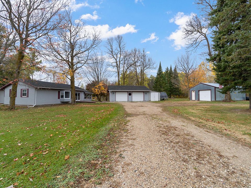 This beautifully updated 3-bedroom, 1-bathroom home offers comfort, space, and versatility both inside and out. Nestled on a serene, park-like setting, the property features a spacious double detached garage that is heated and insulated, perfect for year-round use. Additional outbuildings include a large pole building and a storage shed.