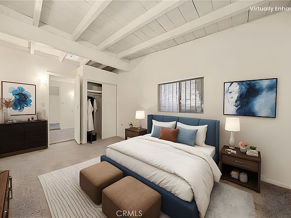 Discover a delightful mid-century modern home built in 1956, nestled on a desirable corner lot. This single-story home showcases recent updates, including fresh interior and exterior paint, new flooring throughout, new HVAC, and new roof. The home's classic architecture is evident from its clean lines and vibrant new paint. Its large lot provides a sense of openness and offers abundant outdoor possibilities. Step inside to discover the living room with lots of natural light, showcasing the home's characteristic exposed beam ceilings which add visual interest and an enhanced sense of space. A separate family room with a charming step-down entry offers additional versatile space for relaxation or entertainment, further enhanced by a classic red brick fireplace. The presence of both a living room and a family room, along with an extra office/den, within the home's efficient layout, speaks to a thoughtful use of space. The versatile office or den provides an ideal setting for a home workspace or quiet study. The bright kitchen features new, light-toned laminate plank flooring, new appliances, lots of cabinetry, and a practical layout. A convenient pass-through to the family room enhances the home's connected feel. This home offers good sized bedrooms with stylish exposed beam ceilings. The bathroom is crisp and clean, featuring a vanity, and a shower/tub combination, ensuring a modern and functional space. Situated on a spacious corner lot, the property offers a large yard space and increased privacy with mature trees and landscaping. A long driveway provides plenty of off-street parking. A standout feature is the extra large, detached 2-car garage, offering impressive space for vehicles, a workshop, or storage. The backyard includes a covered patio area, ideal for outdoor dining or relaxation, overlooking a grassy area. With its recent interior and exterior paint and new flooring, this home is truly move-in ready. The property is conveniently located near schools, local parks offering amenities like basketball courts and picnic areas, and shopping destinations. Easy access to major transportation routes further enhances the home's convenient location. Don't miss the opportunity to own this beautifully updated mid-century gem. With its blend of classic style, modern updates, and fantastic features, this home is ready to welcome its new owners. Schedule your private tour today!