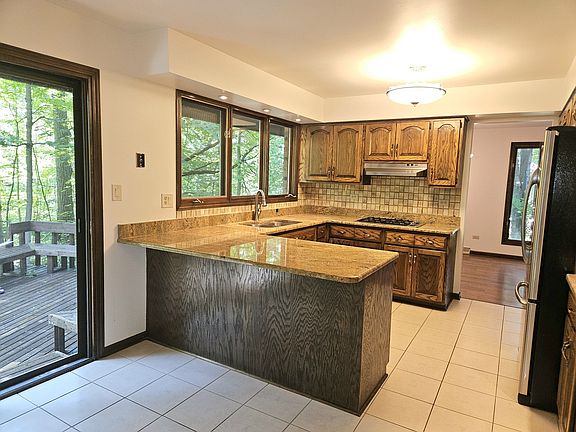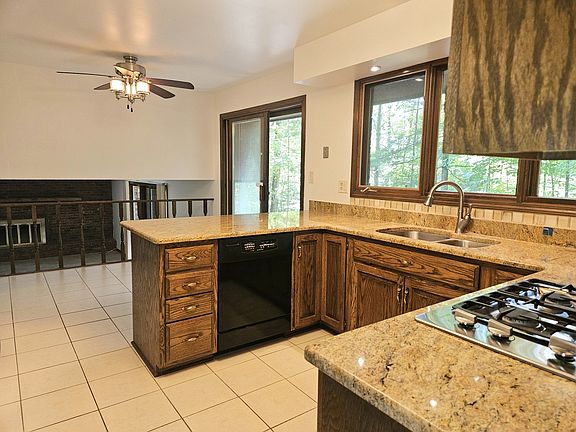 Nestled in nature, this 4 bedroom home offers rustic charm with modern comfort. Enjoy privacy and picturesque views from the back deck. Inside, find a warm interior with granite counters, large windows, and a gas/wood fireplace. The lower level has heated floors and plenty of storage space. Outside, the wooded lot is a nature lover's paradise. Conveniently located near amenities and highways, this home offers a peaceful retreat with a deep connection to nature.