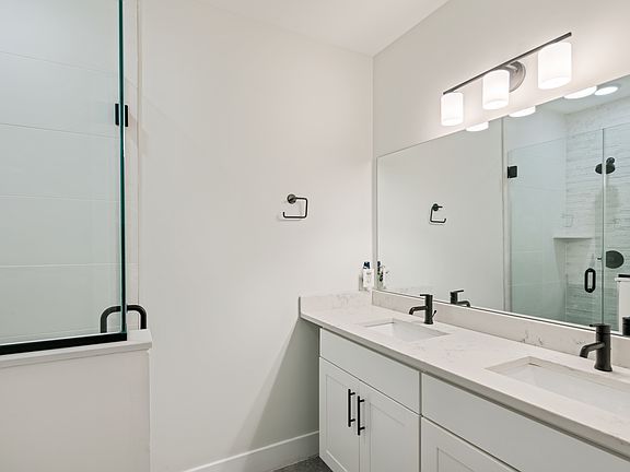A spacious bedroom and full bath on the main level provide flexible living options for guests or a home office. The lower level offers two additional bedrooms and two full baths, including a luxurious primary suite with a double vanity, frameless glass shower, and spa-inspired finishes.
