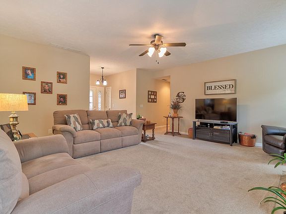 Welcome inside this 3 bedrooms, 2 bath ranch-style home, where a foyer entry leads into a spacious living room with a cozy gas fireplace and an open flow to the formal dining room. The kitchen features a breakfast bar and plenty of cabinet space, making it both functional and inviting. Down the hall are 3 bedrooms and 2 full bathrooms, including a large primary suite with a walk-in closet and ensuite bath complete with a garden tub. The remaining bedrooms share a second full bath. Convenient extras include a main floor laundry room and attic storage. Outdoors, enjoy a landscaped yard with a back deck and patio, plus an attached 2-car garage. A whole-house gas generator, easy-maintenance design, and features built for long-term comfort round out this move-in ready home!