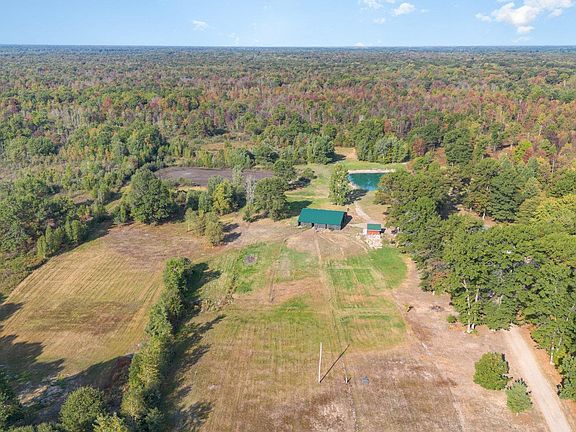 OUTDOOR LOVERS DELIGHT WITH 16.91 ACRES, TEAMING WITH WILDLIFE! The outbuilding is 60x70 with 10 horse stalls! Newer roof on house & outbuilding. Furnace and C/AC new 2021. Two ponds. Remodeled kitchen and primary bedroom bathroom 2021. Meridian School boundary is close. Nice setback from road with 262.36 Ft frontage. Survey and legal Description are included in photos. Great hunting and horse property!! Convenient to Midland & Mt. Pleasant.