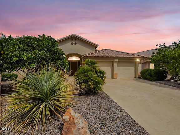 Painted Mountain Golf Course - Resort Style Living with Views! Nestled in a quiet cul-de-sac, this updated home offers the perfect blend of luxury, comfort, convenience -right on the fairway with breathtaking mountain views! Step inside to soaring vaulted ceilings, expansive windows, and an open-concept layout that fills the home with natural light. Freshly painted interiors and rich travertine flooring provide a clean, elegant aesthetic, while plush carpeting adds comfort in all bedrooms. The kitchen features granite tops, a large island with prep sink, & breakfast nook with bay window. Entertain in the inviting great room with French doors leading to an expansive covered patio & sparkling pebble-finish play pool with cascading waterfall, custom putting green & mature fruit trees.