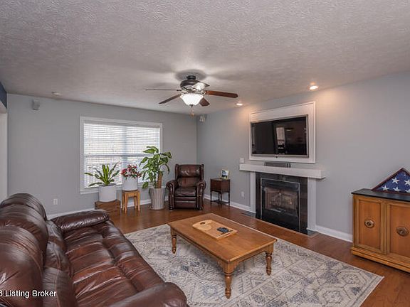 This move-in ready home has so much to offer! This Pine Valley home is conveniently located in the Heart of Elizabethtown, near shopping, restaurants and the Heartland Golf Club. Only a 20 minute drive to both Fort Knox and the new BlueOvalSK Battery Park. The large family room has hardwood floors, a propane gas fireplace and is wired for 5.1 surround sound in a hideaway cabinet behind the television. Lots of sunlight beams into the eat-in kitchen, equipped with stainless steel appliances, lots of cabinet space and a mudroom area off garage entrance. Just off the kitchen is a half bath for guest. The formal dining room is currently used as a home office and features a lighted trey ceiling and French doors. Upstairs is a large primary bedroom w/ lighted trey ceiling, ensuite bath w/ jetted tub, tiled shower and walk-in closet. Two additional bedrooms upstairs, along with laundry room and hall bath. The lower level walk-out is ideal for additional family space, crafting and storage. There is a large concrete storage room that is an ideal safe space during Kentucky storms! The 0.4-acre fall-away lot is neatly landscaped, backing up to woods for privacy to enjoy the deck or patio below. The yard is equipped with an invisible pet fence and the storage shed will remain. The sellers have taken exceptional care of this home in the short time they have owned it. The roof was replaced in 2022. The main floor heat pump was replace in 2022 and the second floor unit was replaced in 2018. A radon mitigation system is installed in the basement. The two-car attached garage is equipped with built-in shelving and overhead storage. Sellers love the quiet neighborhood with friendly neighbors throughout. Fiberoptic cable provides high-speed internet for working from home.