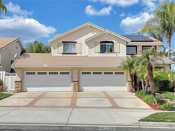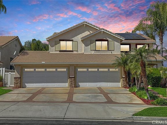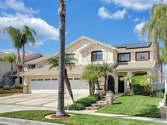 Nestled in a prime area of Corona, this exceptional residence offers an array of sought-after features that make it a must-see. Boasting five bedrooms and three bathrooms, the home includes the highly desirable main-level downstairs bedroom and full bathroom, providing flexibility and convenience. A standout feature is the expansive four-car garage, offering ample space for vehicles and recreational equipment, with a rear single door granting easy backyard access. The attractive large driveway also has stamped concrete. The backyard serves as a private retreat, complete with a pool, waterfall, and spa, ideal for relaxation and entertaining. Inside, the substantial upstairs bonus room presents limitless possibilities for customization. One of the upper-level bedrooms, currently utilized as an office, features glass-insert double doors, adding a touch of elegance. The spacious primary suite includes a bathroom with a separate tub and shower, complemented by an impressive 10x10 walk-in closet. Additionally, two more bedrooms are situated on this level. The kitchen is equipped with Corian countertops, numerous glass-front cabinets, and an eat-in area, seamlessly connecting to the family room, which features a cozy fireplace. Adjacent to this space are the dining and living rooms, located near the main entrance. Recent updates include a newer water heater and water softener system. The property also features two garage door openers, one for each double door, and appliances are included. **BONUS** The sellers are open to discussing a solar lease buyout with your offer! This remarkable home comes with the added benefit of no homeowners association or Mello Roos. It's walking and/or biking distance to parks, nature trails, Cleveland National Forest, shopping, restaurants, 91 Freeway, FasTrak, Metrolink and let's not forget the local award-winning schools.