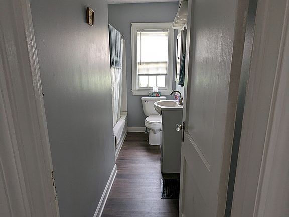 Updated 2 bedroom / 1 bath duplex conveniently located on Mass Ave. Entire unit features vinyl plank floors. Bedrooms are nicely sized. Kitchen with white cabinets and black electric appliances. Living room with lots of natural light overlooking covered front porch. Basement has plenty of room for storage and laundry connections. 2 off street parking spaces included behind the home. Applications must be completed prior to showing. No previous evictions. Come take a look today!