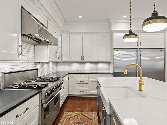 Classic 5 bedroom/ 4.1 bathroom greystone on highly desired Burling Street in the heart of East Lincoln Park. Extra-wide living space in this sun-filled and inviting home with 4 bedroom/ 3 bathroom on second floor and wonderful guest suite in new and improved lower level with heated flooring. Enter through stunning solid core front entry door, intricate marble detail floor, inviting living room with perfectly appointed built-in cabinetry, limestone surround fireplace and incredible solid wood staircase. Main floor hosts magnificent dining space, hallway with powder room, triple door closet space and wonderful living space. Chef Kitchen with 70" side by side Sub-Zero refrigerator/ freezer, dual Bosch dishwashers, 4ft wide Viking range with 6 burners and Viking professional grade hood. Marvelous 11.5ft island, Quartz counter, full-height backsplash, under-mount lighting and gorgeous gold hardware. Separate buffet with built-in cabinetry, wine refrigerator. Dual walk-in pantries fully built-out with full extension drawers. Fabulous family room with limestone facade fireplace, floor to ceiling patio doors, incredible space conducive for large family living and great natural light throughout. Second floor with 4 bedrooms / 3 full bathrooms including two en-suite bedrooms, laundry with upper and lower cabinetry and folding area. All closets fully built-out with custom organizers. Primary suite with dual walk-in closets, lavish all marble bath including steam shower, Oasis jacuzzi tub and private commode. Second en-suite bedroom overlooking tree-lined Burling. Additional bedrooms with original solid core closet doors and skylights. Lower level with new carpet installed 11/08/2020. Great recreational room with tons of natural light, full en-suite bedroom also accessible from side hall. Second laundry room, plumbed for wet bar, mudroom, utility room and walk-out basement perfect for messy days. Walk out patio doors from family room for easy grilling with gas line on deck. Walk-up to sport court with Bison basketball hoop, professionally finished and fully netted by Power Court. Designer finishes inside and out. Truly fabulous home with Pella windows, designer fixtures through out, storage galore and central vacuum system. Walk to playground around the block, Lake, brown and red line, Whole Foods and all that fabulous Lincoln Park offers.
