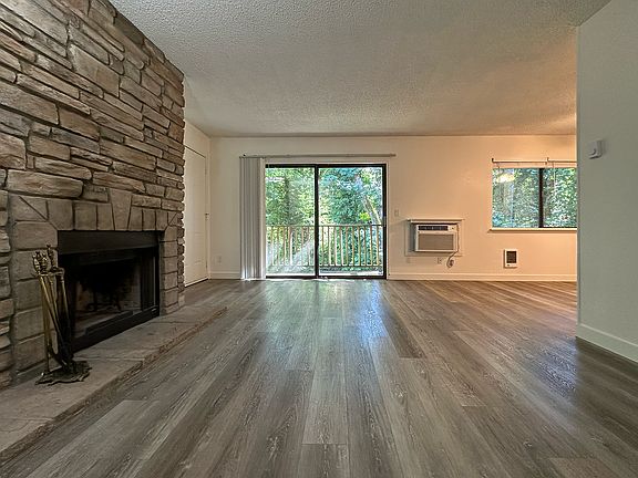 New Lower Price: $1,490. Welcome home to your Freshly Remodeled and Charming 2-bedroom apartment home, nestled among tall trees and woods, with a stream passing by in the backyard ! Your living room, kitchen, and back balcony look out into the woods for a feeling of real seclusion and privacy. And this apartment also has a wood-burning fireplace! Hard-plank floors, new appliances, and lots of cabinets make this apartment home really comfy. Free use of Laundry Room (washer and dryer) is included in the water utility fee. No extra charge for laundry! (tenant pays for water) We are close and convenient to OHSU / Oregon Health & Science University (10-minute drive), and we are walking distance to Hillsdale Village and Multnomah Village. Bakeries, coffee shops, restaurants and walking paths all close by. TriMet bus stop next door. Only a ten minute drive to downtown Portland! Nearby parks include: Hillsdale City Park (5-acre green oasis for picnics, walks, and jogging) (across the street) and also George Himes City Park (36 acres) (3-minute drive) Plenty of free off-street parking (optional garage parking available for addl. charge). Please send us a note or call us on the phone to make an appointment to see this unique property today. With all these amenities, it won't last long. New: We are offering a $400.00 rent credit for leases that begin September 1 or earlier! We ask for proof of monthly income that equals at least 3x rent amount. $35 application fee for each applicant for credit and criminal background check. For the safety and health of all residents, we have strict no smoking, no vaping, no marijuana use, and no drug policies. No pets. . 12 or 18 month lease available. Tenant pays $75 per month for water, but this also includes no-charge use of laundry washer and dryer. No smoking, vaping, marijuana use allowed in unit or on the premisses. No pets. No waterbeds.