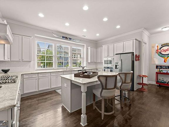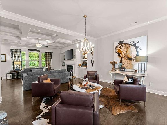 Welcome to your move-in ready dream come true! This newer Brookhaven home with 10 ft high ceilings and an open concept floor plan is the one you've been waiting for! Situated in the quiet part of the highly sought after Skyland Brookhaven community overlooking wooded scenery and doors down from Skyland Park, this home is in a prime location. With shiplap accent walls, built-in shelving and all fresh interior + exterior paint, this home is ready for you to move in & host guests. The kitchen is a chef's delight equipped with stainless steel appliances, oversized kitchen island, luxurious quartz countertops and a pantry area with built-in cabinetry offering additional storage, keeping your kitchen organized and clutter-free. The kitchen opens to the living area which provides ample space for entertaining and boasts coffered ceilings and a gorgeous fireplace. The primary suite is a true retreat with tray ceilings, walk-in closet, a soaking tub, walk-in shower and dual vanities that provide plenty of space for your morning routine. The lower level features a guest suite, ensuring privacy and comfort for your visitors or the perfect work from home space. If outdoors is where you want to be, chill out on your back deck that overlooks a private wooded landscape. The perks of living in this townhome don't end there. The neighborhood offers a host of amenities that will enrich your lifestyle. Enjoy a refreshing swim in the community saltwater pool, stay active and fit in the on-site fitness center, and let your furry friend roam and play in the dog park. Explore the walking trails, perfect for leisurely strolls or jogging, and soak in the natural beauty that surrounds you. Fantastic Brookhaven location with easy highway access to shopping, dining and all that the city has to offer. Don't miss out on this incredible opportunity to own a townhome that combines modern living, tranquility, and convenience!