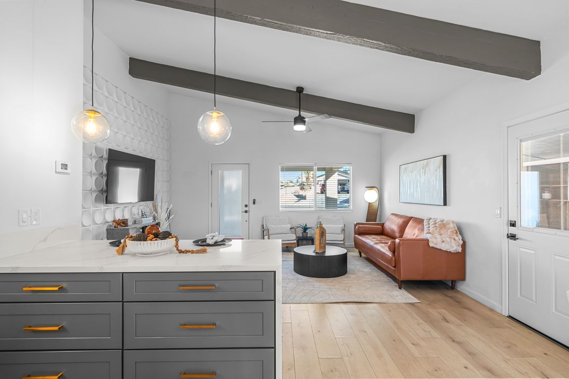 Welcome to this beautifully remodeled mid-century modern home! Recent upgrades include newer plumbing, electrical, and a newer sewer main, ensuring peace of mind for years to come. Inside, the open floor plan showcases designer finishes throughout, highlighted by a striking tile backsplash, elegant quartz countertops, and modern fixtures. Located on a ...