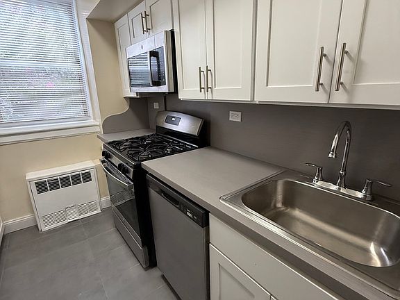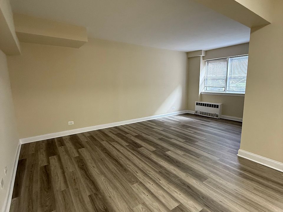 Enjoy the convenience of an updated, windowed bathroom, elevator access, and on-site laundry. Garage parking is available for an additional fee, and heat and hot water are included in the rent.