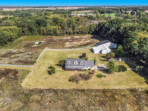 This stunning home sits far off the road on just over 20 acres! This property has endless opportunities and is perfect for entertaining. The home has 5 bedrooms, 3.5 baths, a full walkout basement, an attached two car garage and two pole barns! Lots of updates including new paint, new carpet throughout and a new well! Imagine drinking your morning coffee on the two story back deck while watching the wildlife in your own backyard.
