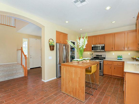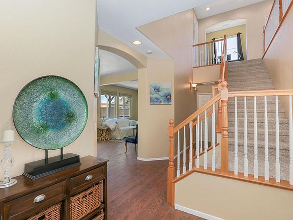 WELCOME TO ANAVERDE! :: This upgraded 3 BR/2.5 BA home sits on a large, elevated lot in the heart of Anaverde. Faces East/West/South so it gets a ton of NATURAL LIGHT. The open concept layout features NEW paint throughout, NEW S/S appliances, pantry, and NEW high-quality porcelain tiles throughout the downstairs and baths. The living room has an ELEGANT fireplace and a nook for a built-in entert. system. All BRs and Office Nook are upstairs. The XL Master BR has a dual vanity bath and walk-in closets. The backyard is ready to relax in and for summertime cookouts with touches that include a concrete patio, NEW pergola and landscaping. The 2-car garage has a custom work bench and storage. One block to Foothill Pk, near biking/hiking. Home has QUALITY updates and is in move-in condition.