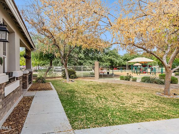 Absolutely stunning, modern, 5bed/2.5bath PLUS massive loft home on cul-de-sac lot, directly next to greenbelt and across from playground! Vinyl floors throughout downstairs, carpet upstairs. Greatroom layout w/ 1bedroom and half bath downstairs. Upgraded kitchen with quartz counters & SS appliances. Two 2024 AC units. Upstairs features massive loft and split primary br w/ tub & shower & dual sinks. All other brs upstairs, along with laundry room. Updated bathrooms. Ceiling fans in all Brs. 3car extended length / tandem garage w/ storage. RV gate and large lot, perfect for toys! Desert front & back landscaping w/ turf. Property sides greenbelt area and playground. Minutes from Loop 202, SanTan Village, parks, shopping, entertainment and more! Photos are gorgeous!