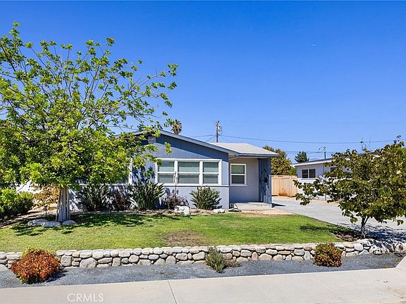 Single-story home set on a spacious lot with endless potential. The front yard features manicured landscaping with a river rock wall, planters, and mature trees. A covered front porch welcomes you into a bright entryway and family room with a large picture window overlooking the yard. Rich laminate wood flooring extends through the main living areas. The living room includes a built-in niche and sliding glass door to the back patio, while the updated kitchen offers granite countertops, tiled backsplash, refinished cabinetry, and a breakfast nook with front yard views. A convenient laundry closet and half bath are located just off the kitchen, with direct access to the driveway and garage. The home includes three bedrooms and a full hall bathroom featuring tiled counters, a walk-in shower with glass enclosure, and a separate tub. The enclosed covered patio provides additional living space and could easily be reopened as a traditional patio. The expansive backyard offers a large grass area, room for gardens, and space to add a pool or even an ADU. The home does offer a newer HVAC system.