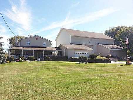 An absolute gem, located in convenient, rural area near Lake Ontario. This large, post-90's farmhouse boasts a modern, open floor plan w/vaulted ceiling. "cat walk" hallway overlooking large great room & French doors leading to rear living room w/gas fireplace & walk-out to deck. Master suite complete w/Jacuzzi tub, tiled shower, gas fireplace & 2nd story deck overlooking a pasture-esque, partially fenced lot (perfect for horses!). Still not sold? Try a 6+ bay, 40' x 60', 4-story, vinyl side barn w/12' door clearance! All attached to house by large wrap-a-round deck.