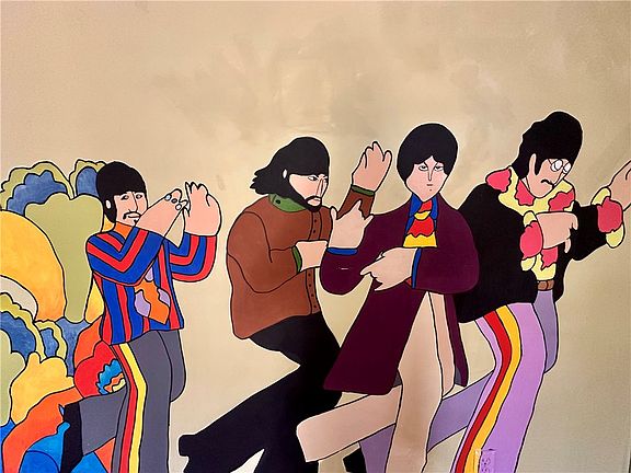 Here Comes The Sun…Great natural light from the large windows in the bonus/family room. The living room is a true standout with a custom Beatles mural and an abundance of shelving for all your treasures. Tankless water heater in the front bathroom.