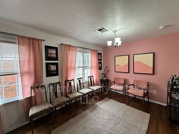 Step into this inviting NW OKC rental that blends character with convenience. The open living and dining areas are filled with natural light, creating a warm and welcoming atmosphere.
