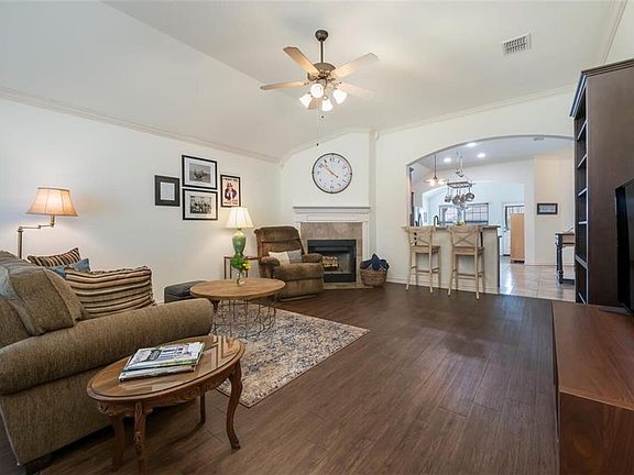 Beautiful and Move-In Ready Harris Village Home! 3 Bedrooms and 2 full baths. Spacious and open Living with Corner Fireplace. Kitchen has nice walk-in pantry, granite counters, stainless steel appliances, and island. There is seating at the island and bar behind sink. There is also a formal dining room. Isolated master has walk-in closet, dual vanities, Separate shower, garden tub, and granite counters. The patio has been expanded with a very nice pergola and there is nice 12'x16'+/- workshop/storage building on concrete with electricity. There is a raised garden bed and multiple rain barrel water storage from gutters.