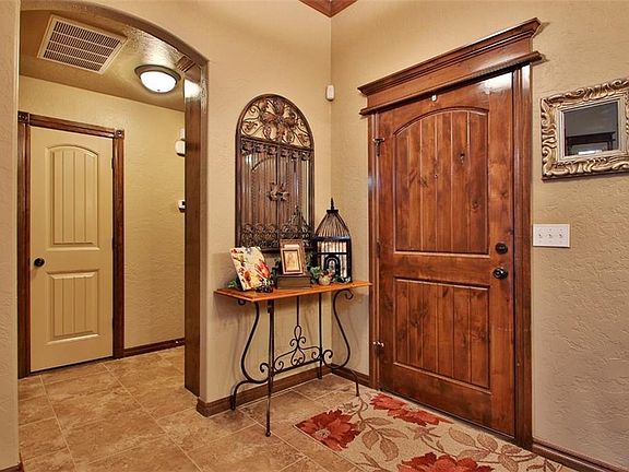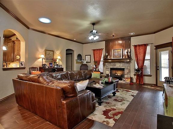 Beautiful well maintained home in Rock Creek Estates! If you are looking for a home to fit your large truck or SUV look no further. This 25' x 29' oversized 3 car garage will do the job. Large corner lot, stained concrete walkway, porch & large covered patio, w/additional pavers from front to back. Storm Shelter in the garage. Beautiful granite in the kitchen w/stainless appliances, new dishwasher in 2017, island, and pantry, Lots of crown molding. Wood look tile in family room w/stone gas log FP & ceiling fan. Split plan. Large master suite w/access to patio, tray ceiling, crown molding, ceiling fan, & walk-in closet w/built-ins that connects to utility room. Master bath with granite countertop, double vanities, walk-in shower, and whirlpool tub. Secondary beds have ceiling fans. Carpet in all the bedrooms. Tons of extra storage! Sprinkler system, security system, water softener. New HWT 2017. Insulated garage doors 2016. Neighborhood pool and park! See today!
