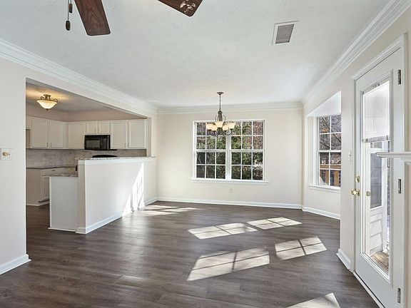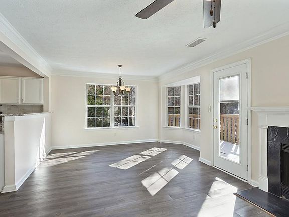 IMMACULATE fee simple townhome w/2 car garage and updated throughout. Upgrades include: white cabinets in kitchen with granite/tile backsplash. Hardwoods throughout main with open living & dining area w/crown molding and fireplace. Upstairs two large bedrooms with full baths, new carpet, paint and granite! Full basement with exterior freshly painted. A must see! Close to 75 and KSU! No HOA fee and great location/private backyard.