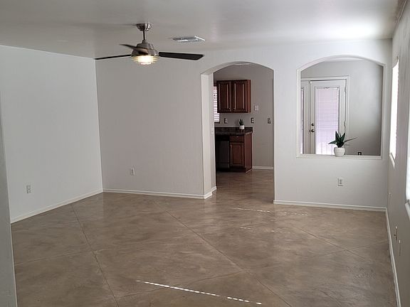 Located in West Tucson, this well-maintained three-bedroom, two-bath home offers a spacious and open floorplan. The kitchen features stainless steel appliances, and the home boasts beautiful stained concrete flooring throughout, with the exception of two bedrooms.