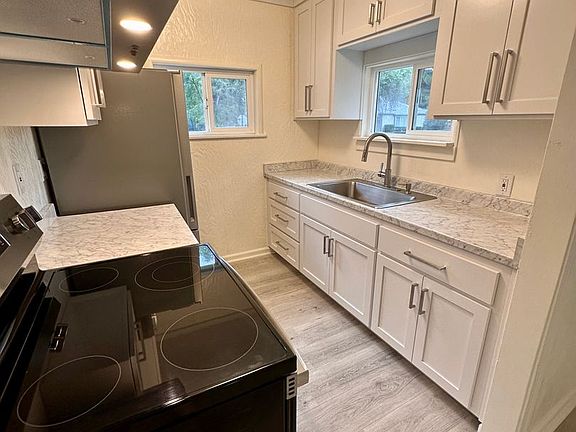 Welcome to your new home in Redding, CA! This stunning 2-bedroom house offers a full bathroom, complete with a new vanity. The house has been recently updated with fresh paint, new countertops, new flooring, and new light fixtures, creating a modern and inviting atmosphere. The kitchen has been fully renovated with new cabinets, ready for you to cook up a storm. The luxury vinyl plank flooring throughout adds a touch of elegance to the space. The house also features washer/dryer hookups for your convenience. The property includes off-street parking, additional side parking and a fenced front yard, providing an extra layer of privacy. The mini-split HVAC system ensures your comfort in all seasons. The house is pet-friendly, with one pet allowed upon the owner's approval. The location is unbeatable, being near shopping centers and restaurants, making your daily errands a breeze. Experience the perfect blend of comfort and convenience in this beautiful home.