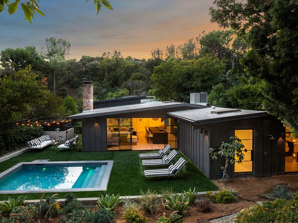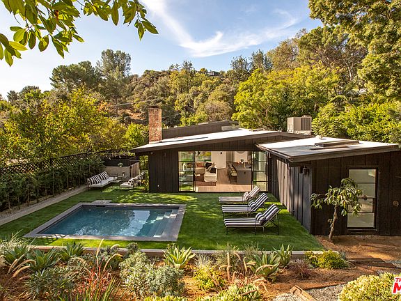 Nestled in the coveted enclave of upper Laurel Canyon and Wonderland school district, this incredible three-bedroom, three-bathroom home presents a secluded, architectural retreat displaying the finest in California mid-century ranch design encompassing space, style, and nature. Meticulously updated with a tastefully curated palette of raw materials, not a detail was overlooked to preserve the integrity of the property's original 1950s bones. The completely renovated interior of the home is influenced by the natural setting of its exterior with rich stones, hand plastered walls, wood beamed ceilings, sleek cabinetry, and custom steel-framed windows. The walls of glass, open floor plan, and seamless indoor-outdoor flow bring the surrounding nature inside allowing one to live, play, work and disconnect in style. Impeccable attention to detail continues outside where the large backyard with pool provides privacy all while enjoying the mature landscaping and serene canyon views.