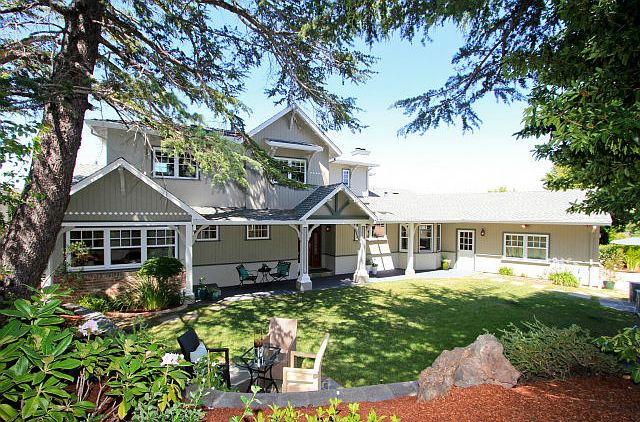 Spectacular & rarely available 5 bedroom remodeled home on quiet, coveted street! Excellent floor plan features two master suites (including one on main level) & impressive great room - perfect for entertaining. Beautiful eat-in kitchen with fireplace, lovely dining area w/ access to terrace balcony, wonderful grounds, hardwood floors, & views! This is truly a special home on a fantastic street!