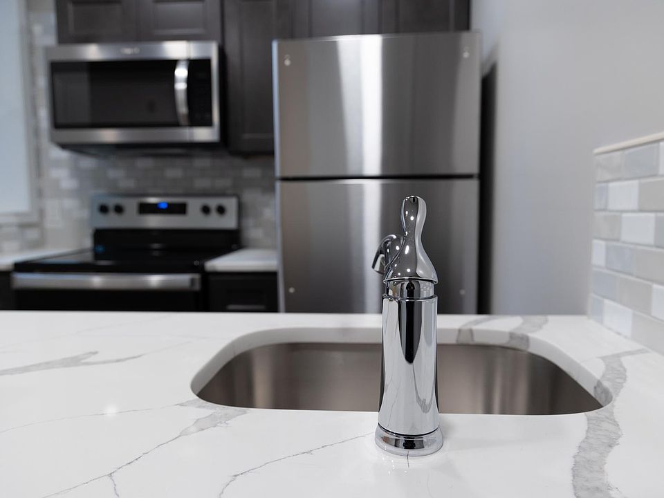 Quartz countertopsAmazing natural lightIn-unit laundryBuilt-in microwaveModern kitchenStainless steel appliances