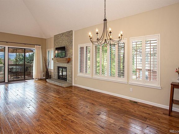 Wow, this is the townhome you've all been waiting for with a main floor primary bedroom. A beautifully appointed GEM nestled in a very private & quiet cul-de-sac setting with gorgeous mountain views from so many windows, the deck & patio. This bright and open floorplan offers 3 living spaces with an en-suite bedroom on every floor. If you want to wake up with views of the mountains without leaving your bed.. Then this is the home for you! Beautiful hardwood floors on the entire main floor and plantation shutters throughout. The Kitchen has stainless appliances, painted cabinets, granite counters and an eating nook adjacent to a cozy family room with fireplace, built-in shelving and cabinets. The large Living/Dining room is perfect for entertaining with vaulted ceilings, fireplace and sliding doors to the charming deck for viewing the lovely Colorado sunsets. The upper level has a loft and en-suite bedroom. The fully finished walk-out basement offers a large bonus/game room, a large Family room with sliding doors to the patio and another en-suite bedroom great for guests. In addition to all the Highlands Ranch HOA amenities Remington Bluffs HOA has it's own pool just a block away and also includes snow, trash, outside maintenance and landscaping.